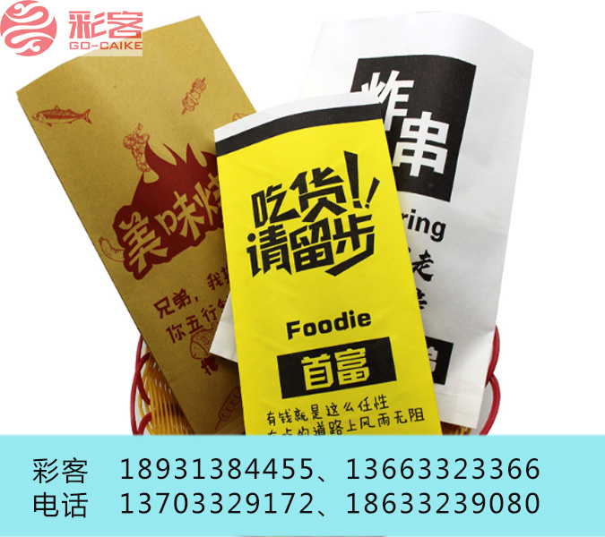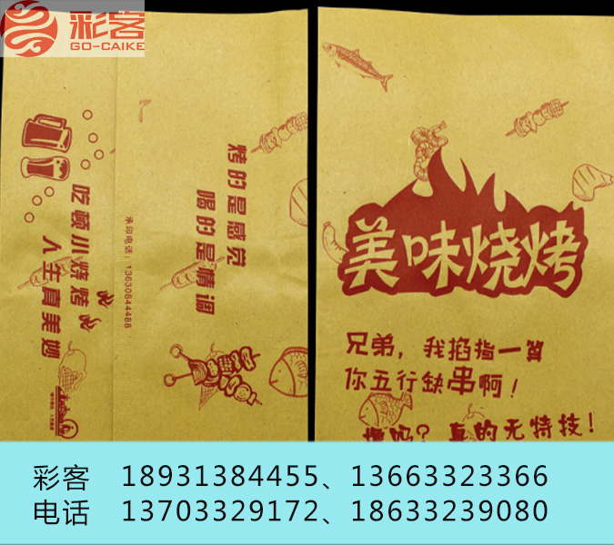 保定彩客承接设计、印刷、订做、定做、制作各种烧饼纸质包装袋、烧饼打包纸袋、馅饼纸质包装袋、馅饼打包纸袋、煎饼纸质包装袋、煎饼打包纸袋、肉饼纸质打包袋、肉饼包装纸袋、卷饼纸质打包袋、驴肉火烧包装纸袋、炸串纸质包装袋、炸串打包纸袋、烤串纸质打包袋烤串包装纸袋、烤烤纸质打包袋、烤烤包装纸袋设计、印刷、订做、定做、制作等业务。